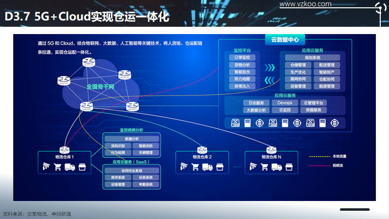 大数据与云计算:大数据与云计算使得现代物流具有了高效的信息存储和分析能力,所以他们也将是新一代物流的关键技术,高效的数据存储和分析架构使得物流数据能够被及时存储和挖掘,强大的云计算架构使得物流应用得到高性能的计算服务。5G 高带宽的特性使得基于大数据和云计算的“云物流”架构变得更加实用。