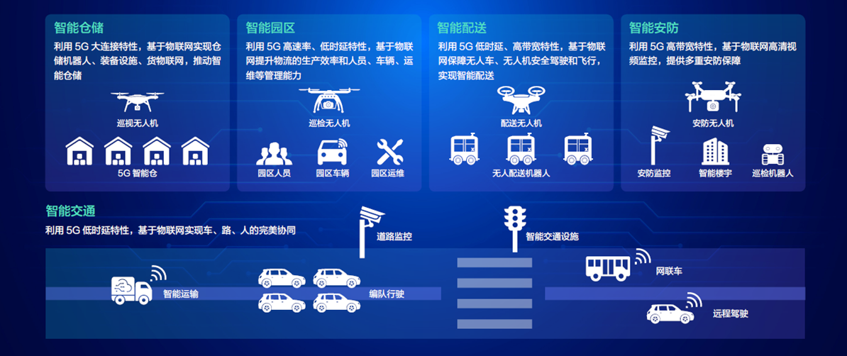 物流行业的中心枢纽——物流园区,将运用5G高带宽、低时延、大连接的特性,极大程度提升各项物联网设备的连接和交互能力。