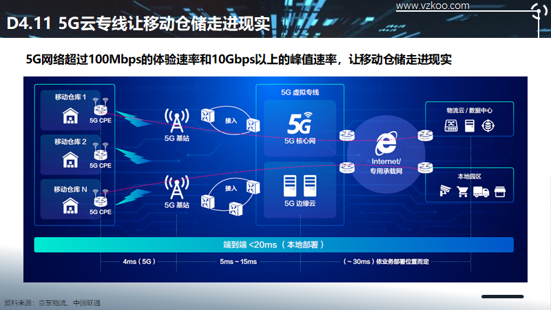 5G网络超过100Mbps的体验速率和10Gbps以上的峰值速率,让移动仓储走进现实