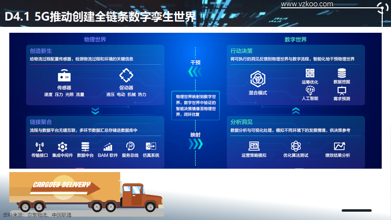 从宏观物流网络,至微观的物流生产,5G链接了上游企业到终端用户、从躯干到毛细血管的海量数据,将非结构化的数据聚合处理,最终映射出结构化的孪生数字世界。