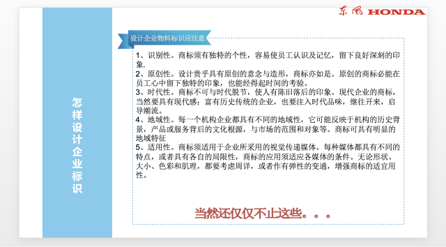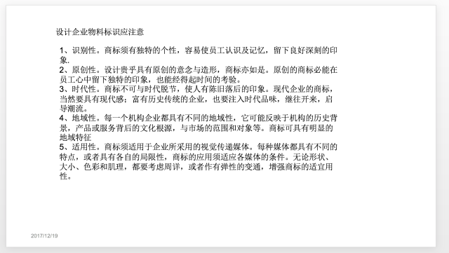 上面的主标题设计企业物料标识应注意该作者给其配上了图标使得标题不会那么单调,但是这个图标妥妥的就是winxp2003年的画风吧。右边,她们甲方爸爸的logo就直接给放在ppt的外面了,如果是放映,这个或许就是一半的效果,当然,甲方不开心了,结的工资可能也一半