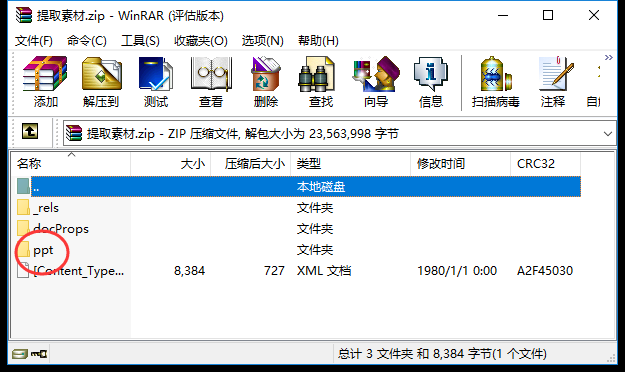 当然,现在主编要的800个字已经够了,我还要分享更暴力的大招!如果在你的电脑里能看到文件的扩展名,直接把PPT文件的扩展名pptx改成zip就好,一步到位,然后就可以操作了。
