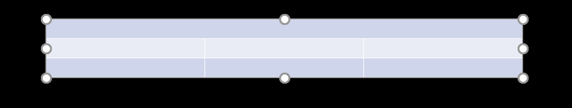 其实不然,文本框是无法做出上图那样的分栏效果的——我们需要使用的是「表格工具」—— 绘制一个3×3的表格,取消「标题行」,调节它的宽度,然后将第一行三列合并单元格,得到下图样式: