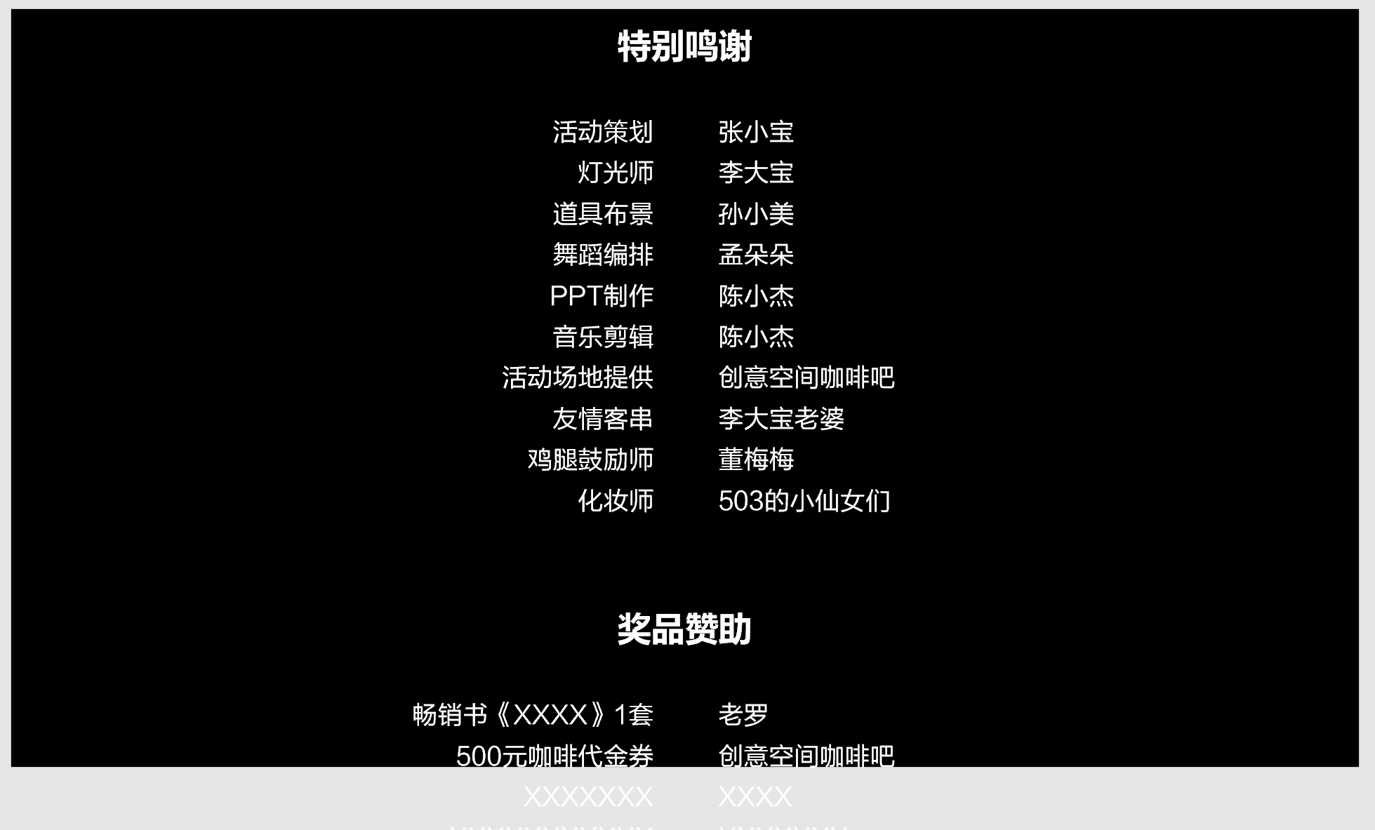 前两天去看了《惊奇队长》,在等彩蛋的过程中,看着一行行的字幕在面前滚动,我突然想到:这种滚动字幕式动画,其实在我们制作年会、活动类PPT时,也是非常值得一用的。一来可以感谢所有为这次年会、活动贡献力量的同事,二来可以埋下好玩的梗,调节现场气氛。
