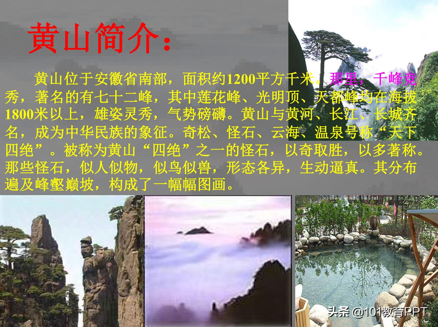 图片是非常随意地进行摆放了,右上角的图片压住了文字,为了凸显被图片遮住的“那里,千峰竞秀”,还用了玫红色,乍一看,以为这几个字是重点呢~
