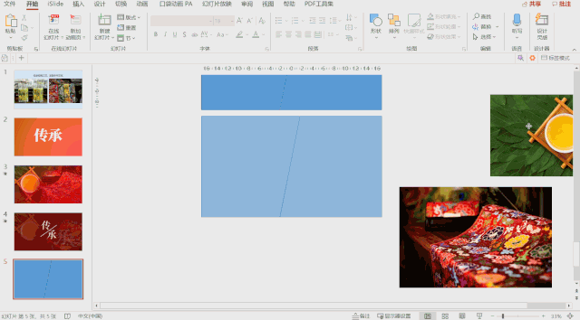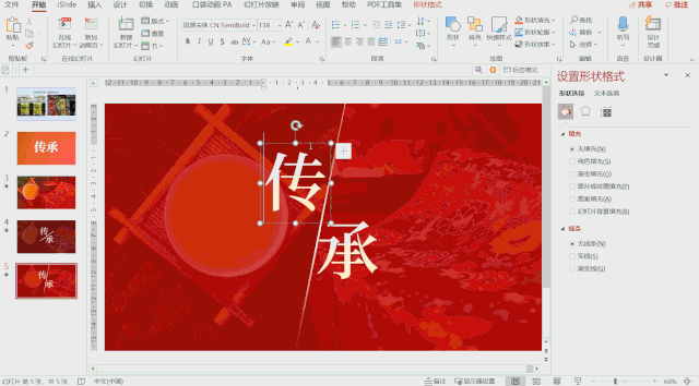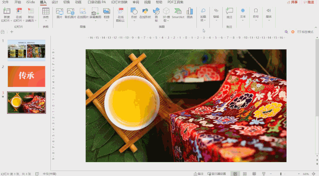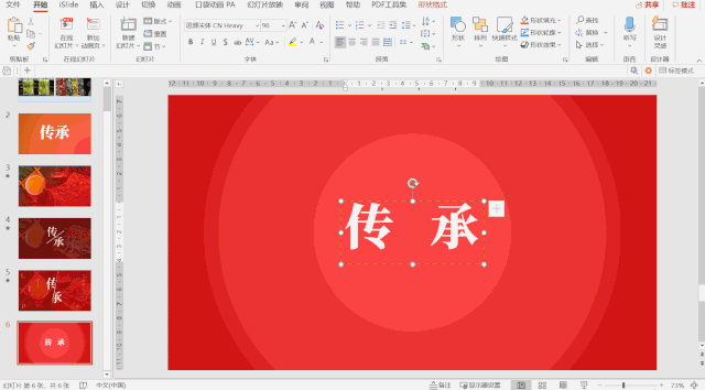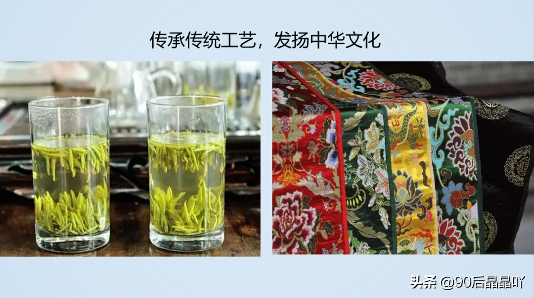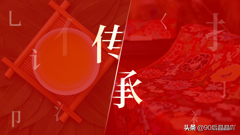 为了在演讲过程中让观众印象深刻,我们可以选择将两项内容进行融合并且作为背景来突出我们这一页的主题——传承: