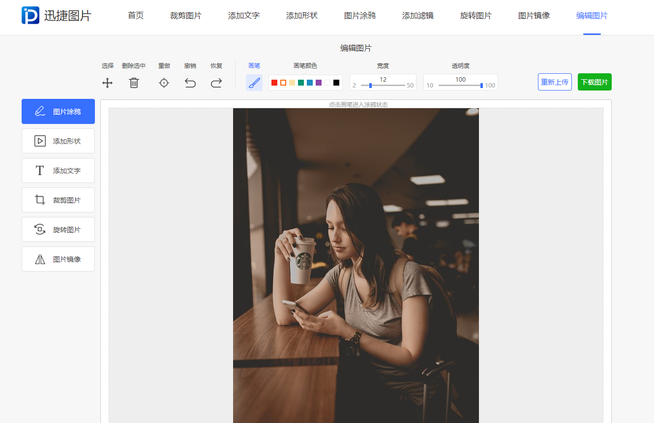 网站界面的功能排列一目了然,可以单独使用其中一项,如裁剪、添加文字、添加滤镜、图片涂鸦等功能,也可以使用综合功能【编辑图片】,这个是小编很常用到的操作,简单易上手。