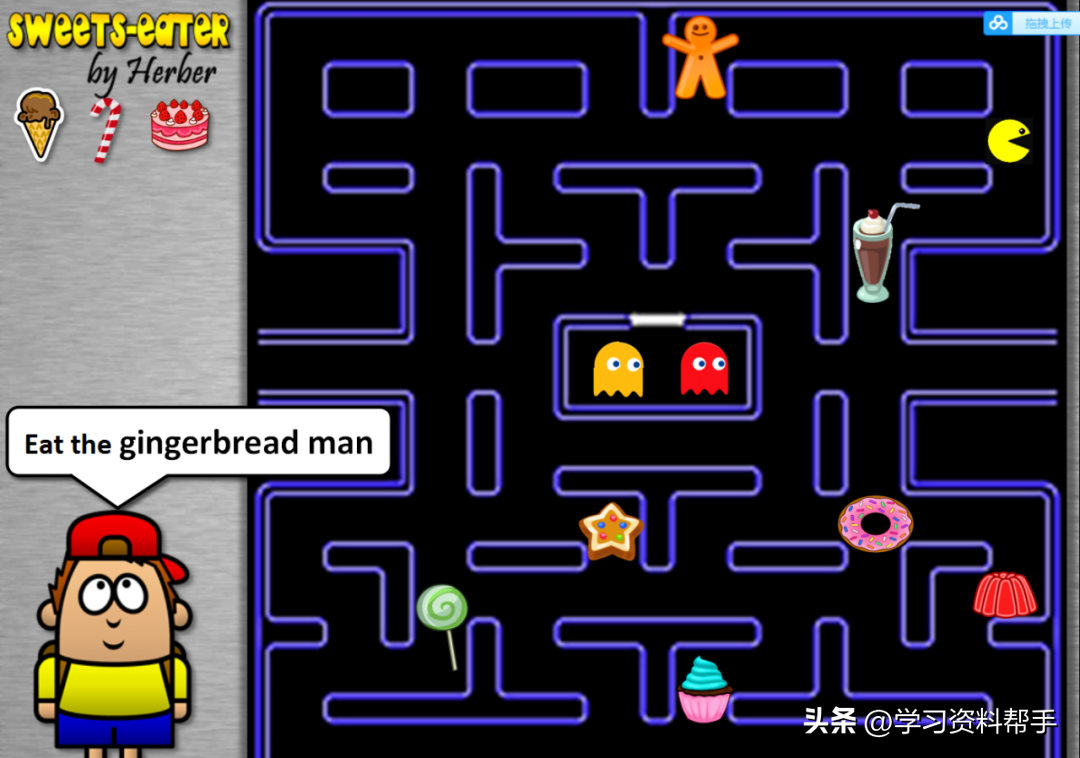 巧妙的吃豆豆游戏,左边出现要求,然后用鼠标去点击相应的物体,才能让吃豆豆的小人顺利地吃到哦!成功吃到的食物会出现在左边的“功勋墙”上,成就感满满哦!