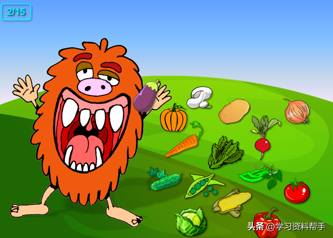 农场来了一只贪吃的小怪兽,快来看呀!他要吃什么呢?