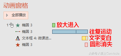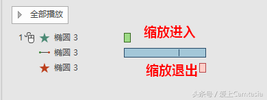 8.五、再给光球增加一个缩放进入和缩放退出的动画,时间安排如下图:六、下面是文字动画了,将文字变黑,然后添加“字体颜色”的行为动画