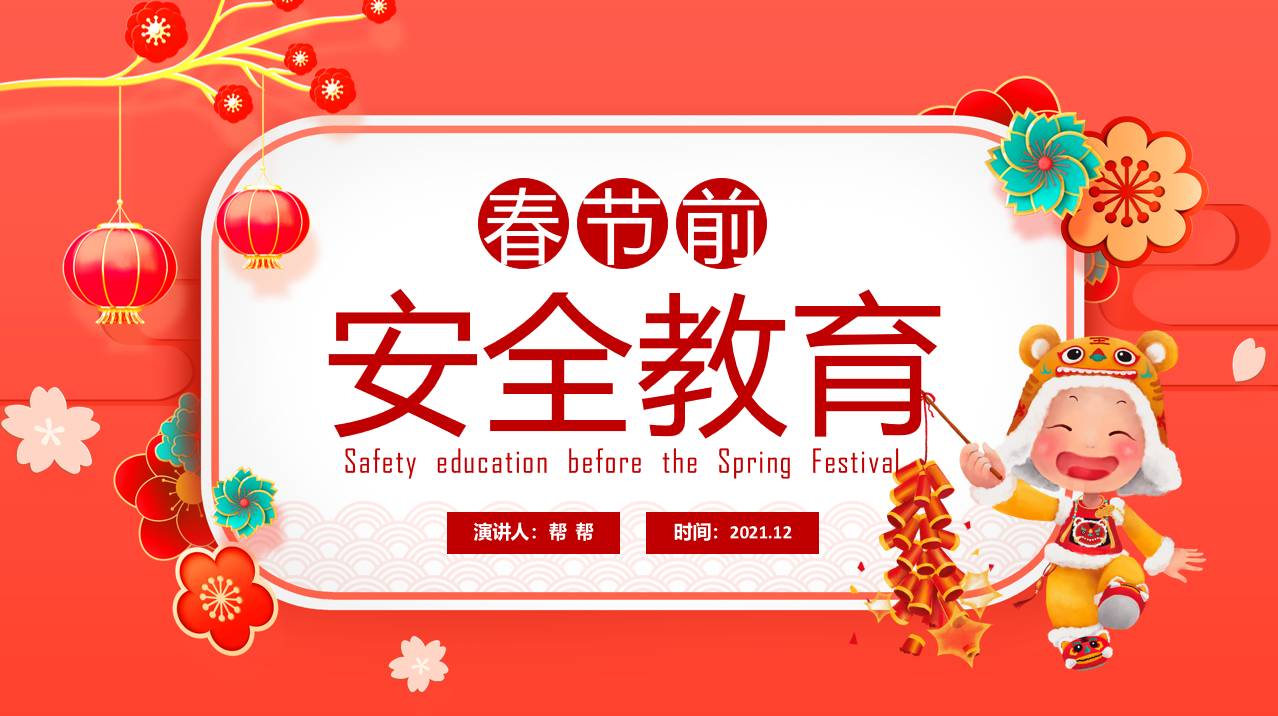 2.今天跟大家分享一张中国风春节前安全教育PPT动态模板,安全培训多行业通用,轻松简单。