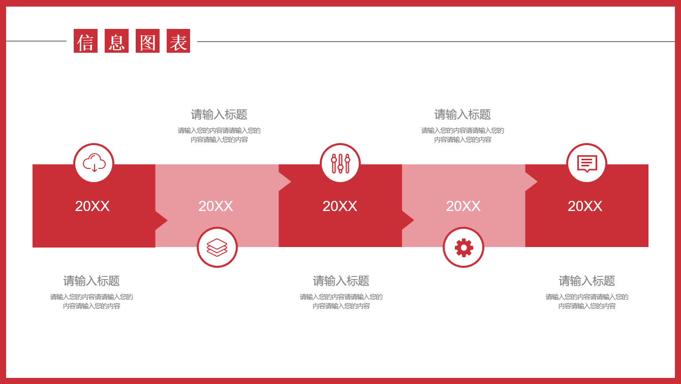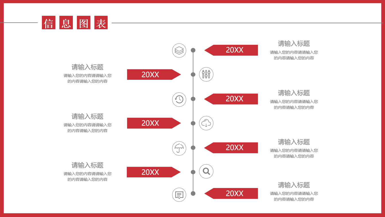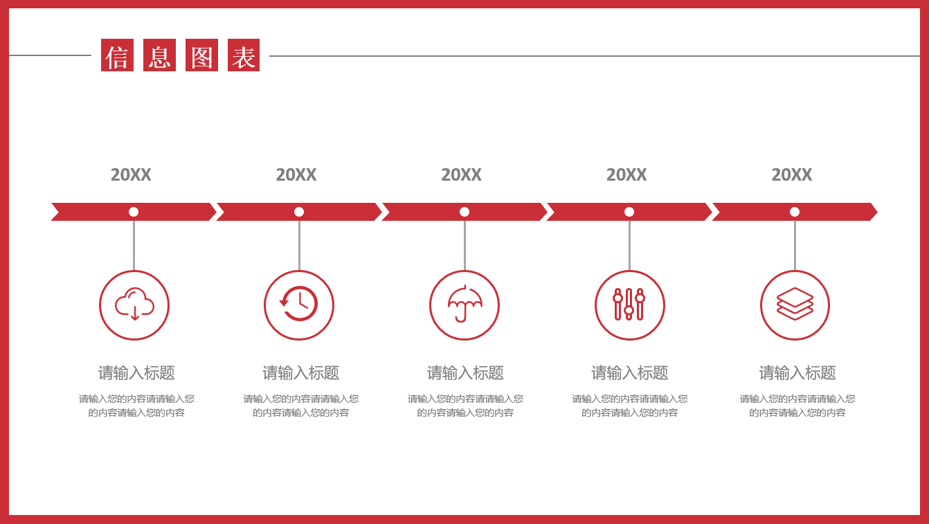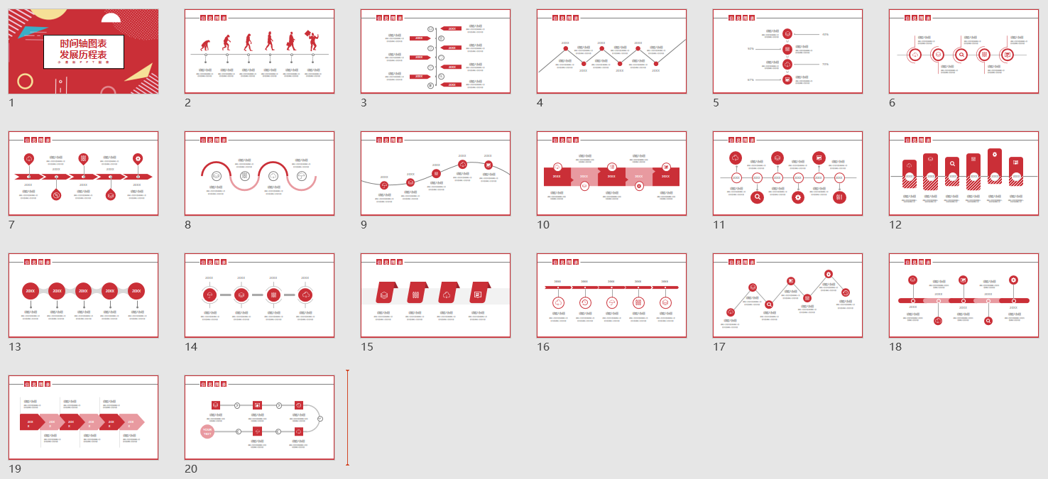 2.今天跟大家分享一张红色历程表时间轴图表PPT,演示图形图表文件,精美排版轻松套用。
