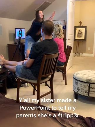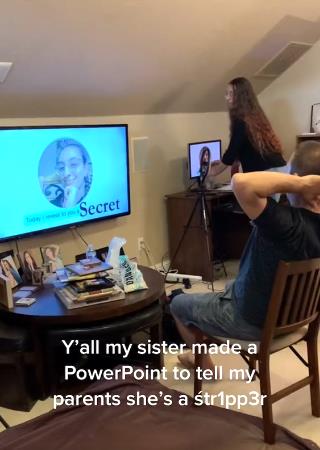 就在前些天,Lex的妹妹录制了一段视频上传到tiktok,里面拍摄的是Lex如何向父母介绍自己的工作的: