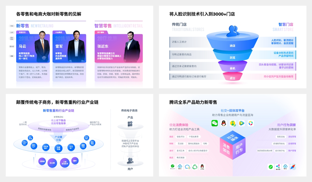 说到这些突然想起来之前还做过一份新零售PPT的改稿,里面涉及到了很多PPT的设计技巧,今天就分享给大家。