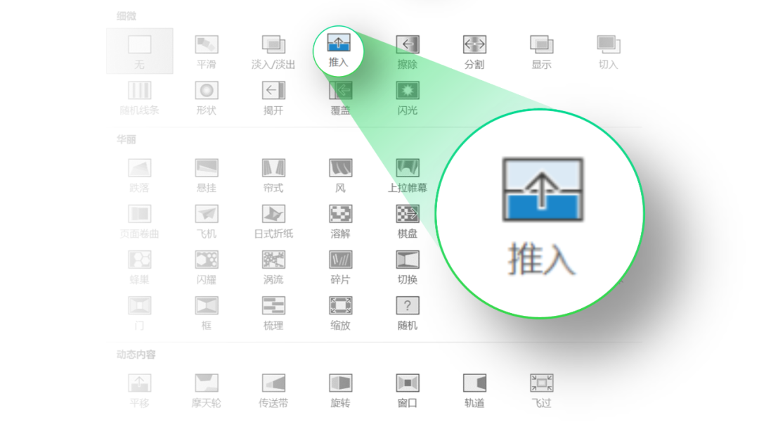 再通过添加推入动画,以此保证内容的连续性: