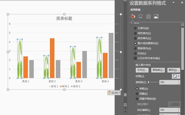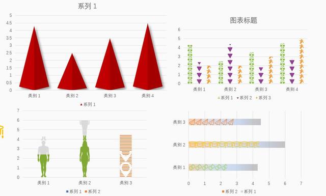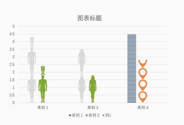 同样的方式粘贴其他几个图标,得到如下。其中类别四中,系列1图形是做了图案填充。