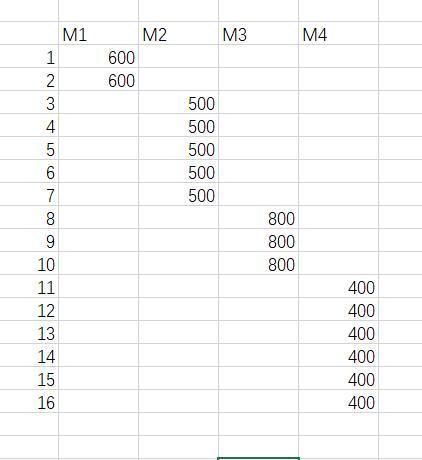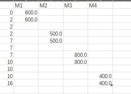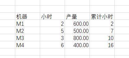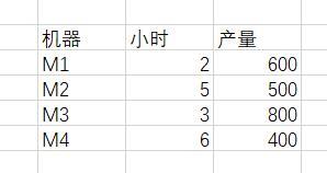 对数据进行分析,4台机器一共是16个小时,所以对源数据进行处理,得到下表。