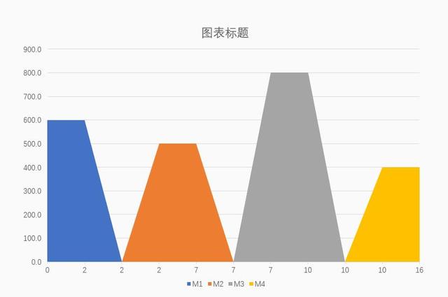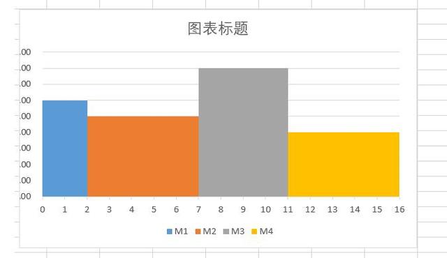 1.比如上面做的不等宽柱形图,其中一种方法是用堆积面积图,得到如下效果: