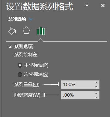选择其中一个系列,在系列选项中设置系列重叠100%,间隙宽度不变,得到如下: