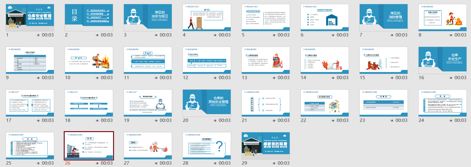 4.请大家点击文章末尾的“了解更多”,在里面找到并关注我,里面有海量各类模板素材免费下载,我等着你噢^^<——非常重要!!!メ大家请看范例图片,仓库安全管理培训PPT,员工6S教育物流管理,全内容演示课件。