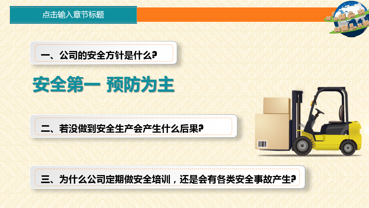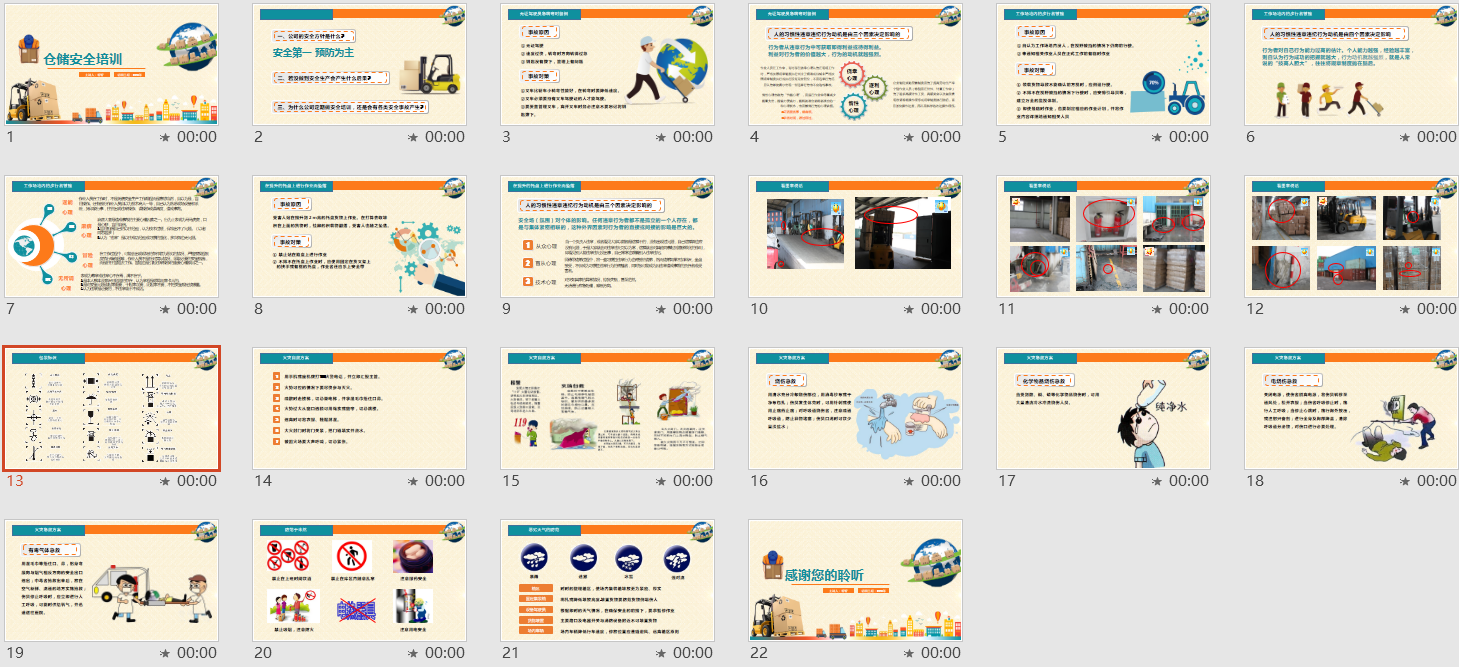 4.请大家点击文章末尾的“了解更多”,在里面找到并关注我,里面有海量各类模板素材免费下载,我等着你噢^^<——非常重要!!!大家请看范例图片,仓储安全培训教育PPT课件,完整内容框架。