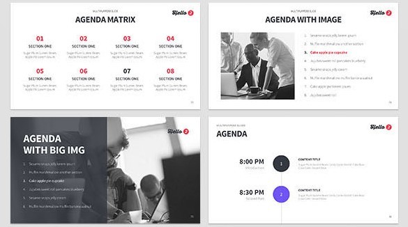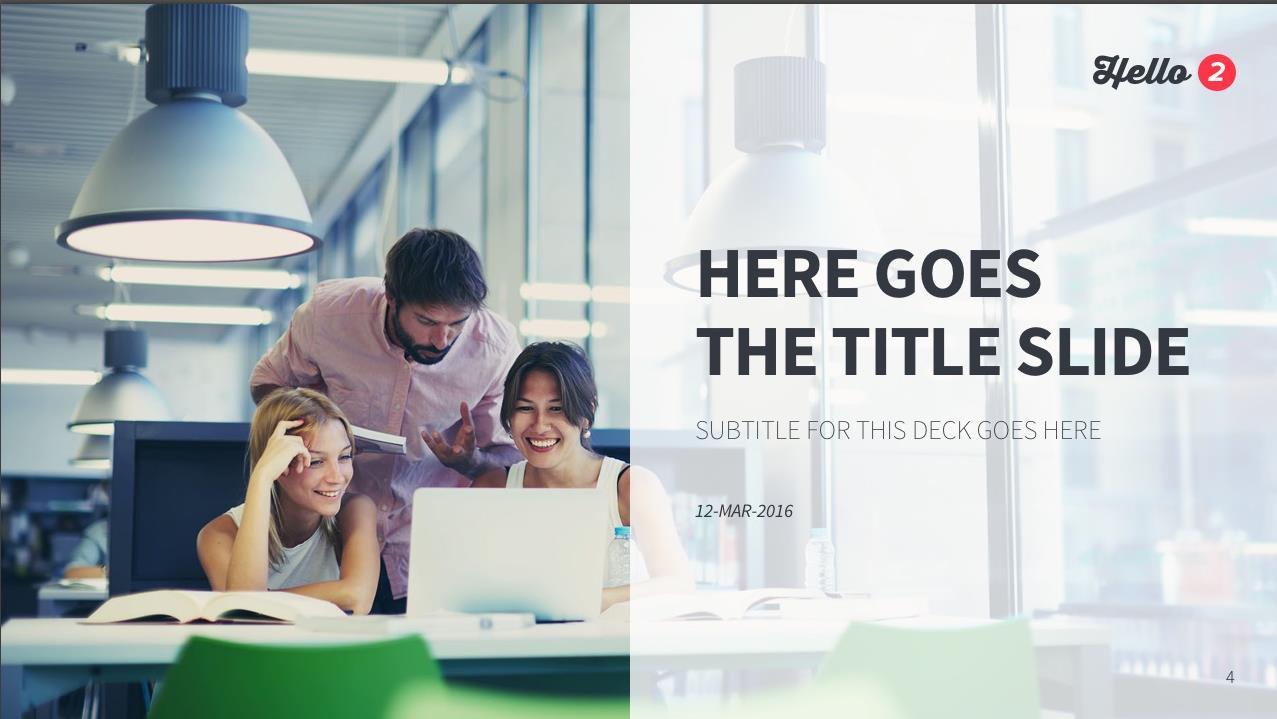 此外,您还可以使用其他颜色自定义幻灯片。如果你想反映公司的品牌,或者你的会议是关于你的业务变化的。