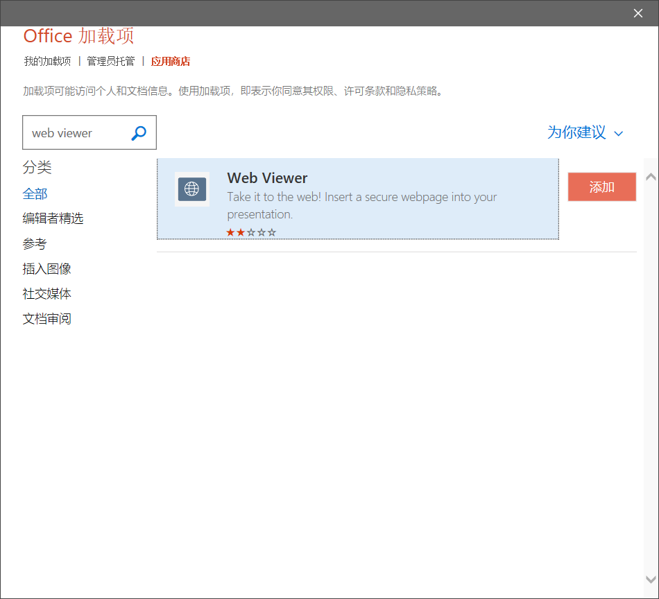 Web viewer,位于PPT加载项里面,按照下面的流程即可添加为我的加载项
