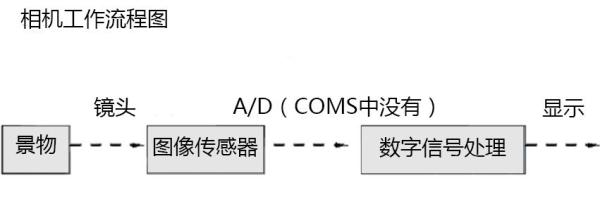 相机的构成简单来说,就是镜头与感光芯片。相机最概念性的结构框图,可以用镜头+图像传感器+数字信号处理(DSP)概括。如果图像传感器类型是电荷耦合元件(CCD),那么在图像传感器采光后还需要一个A/D转换的过程,如果是互补型金属氧化物半导体(CMOS)则不需要A/D转换。