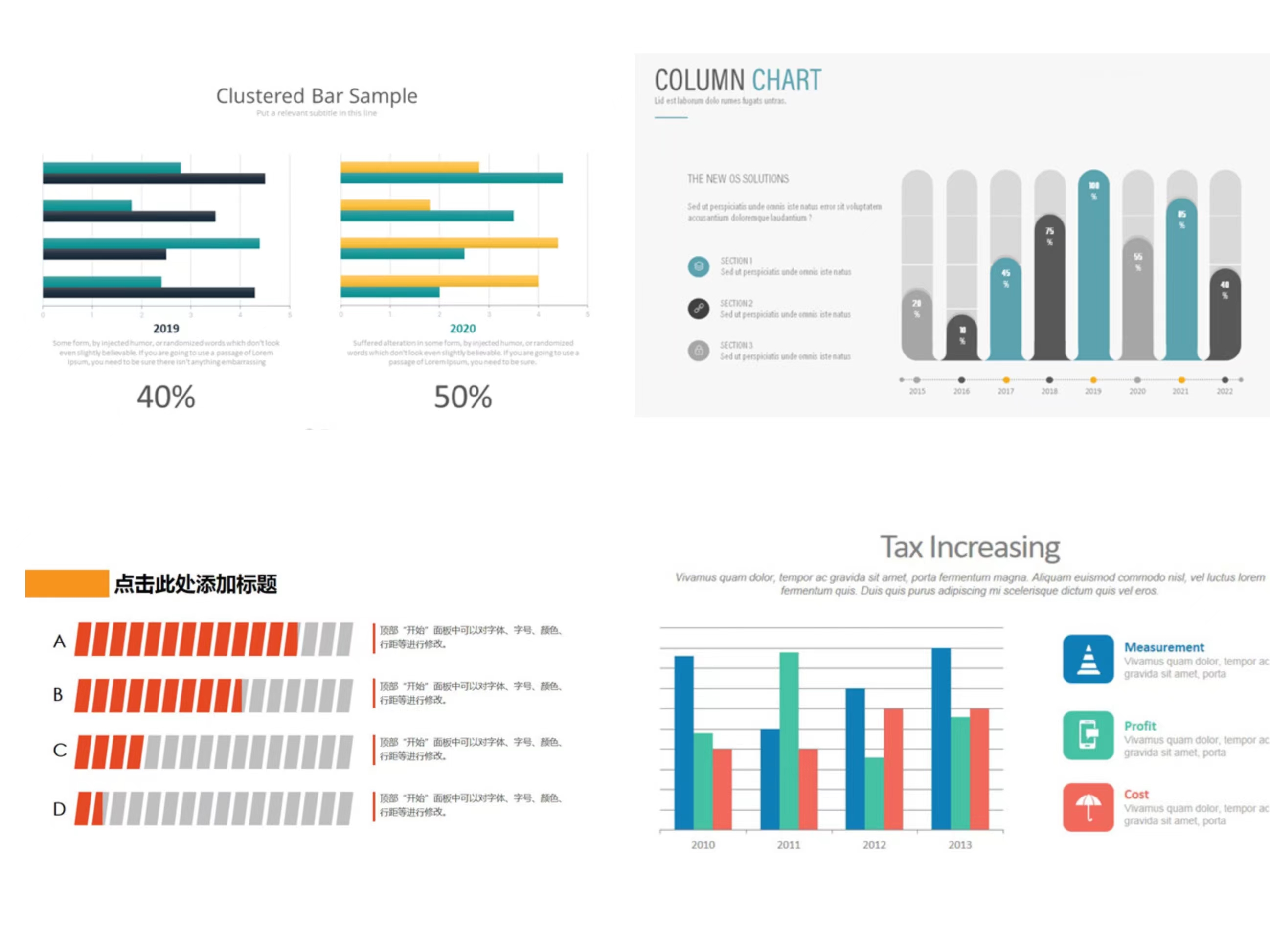 TIPS一定要用数据,并善于用图表表示(以下列举了一些图表模版)