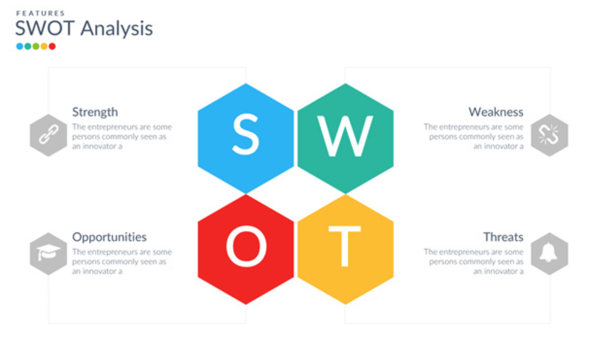 根据第一部分的总结,我们要看到问题和提升空间,这里可以用SWOT工具来做全面的分析。