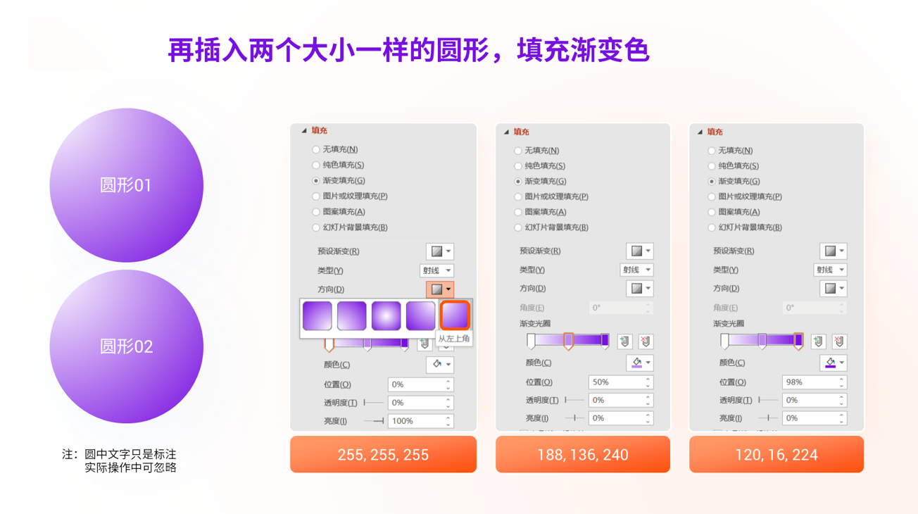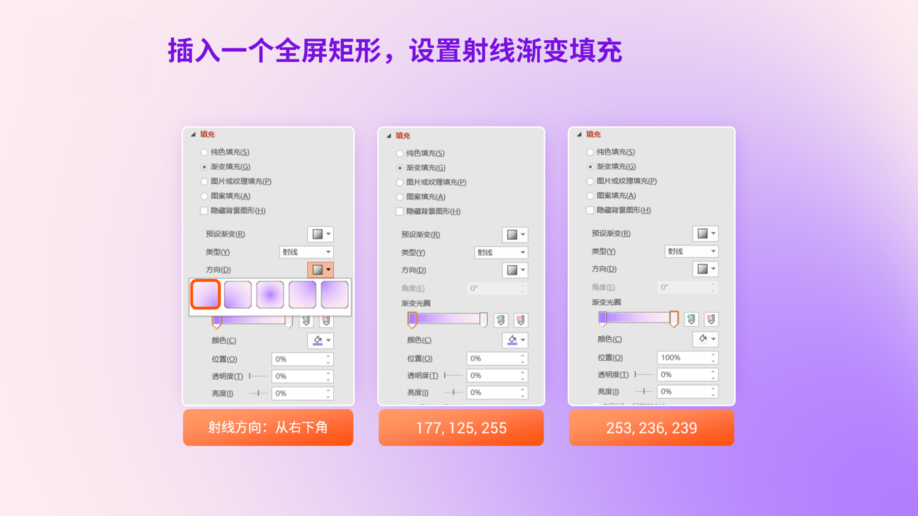 01. 插入一个全屏矩形,设置射线渐变填充。