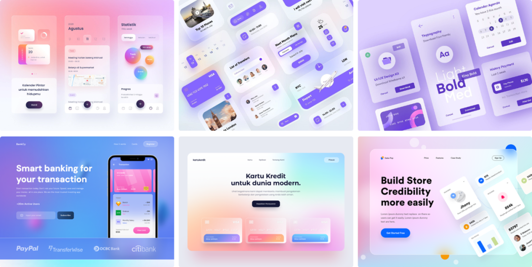如果想要页面更加丰富些,可以添加几个立体渐变求做修饰: