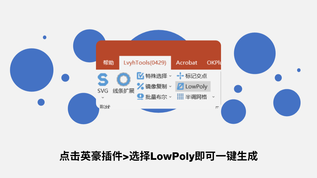 这个怎么做的?当你画好圆形之后,使用英豪插件,点击 LowPoly, 即可一键生成: