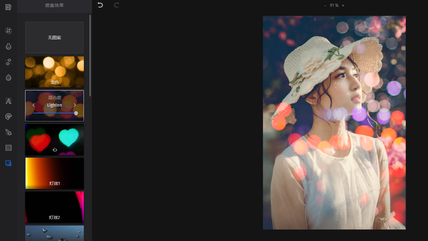 在左侧工具栏有各种特效,点击即可添加,特别好看!