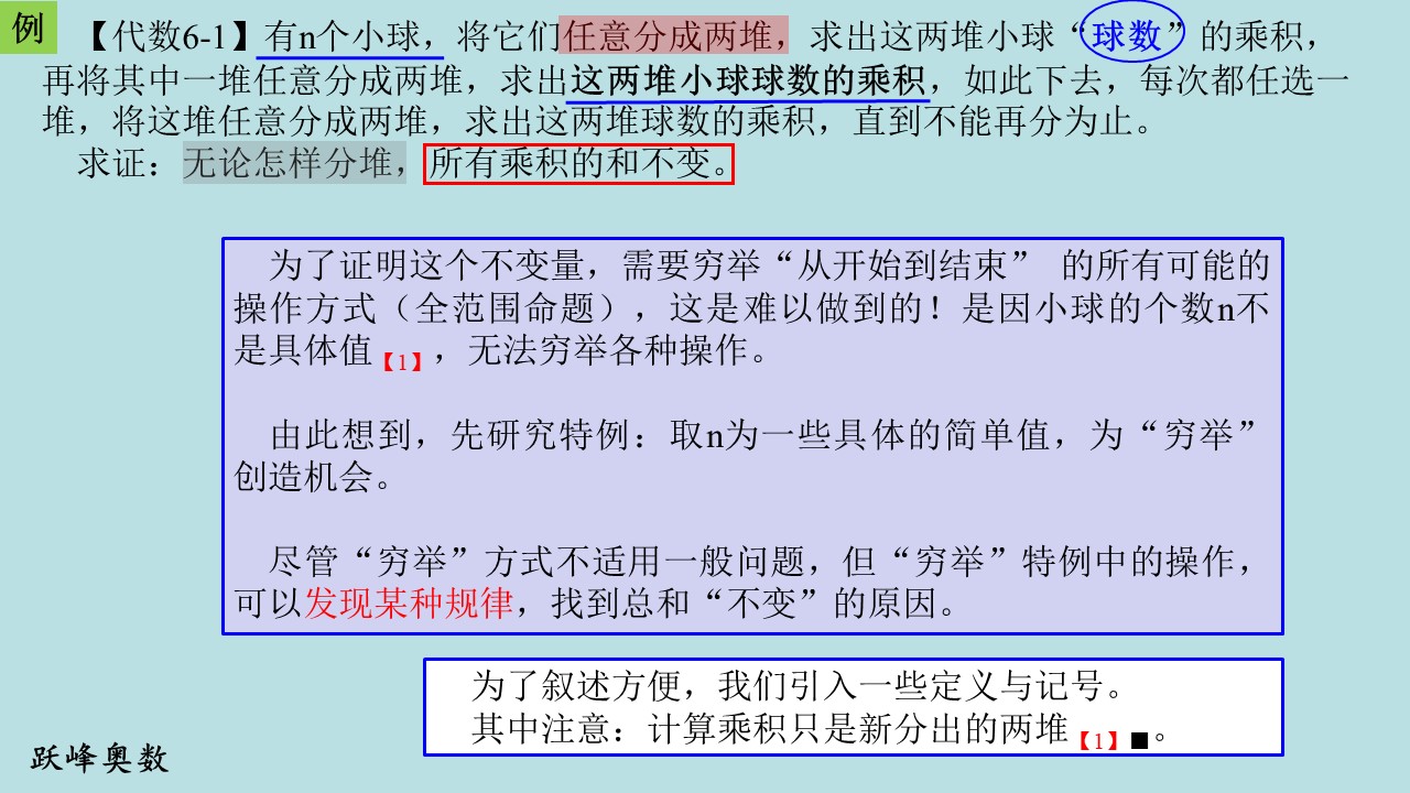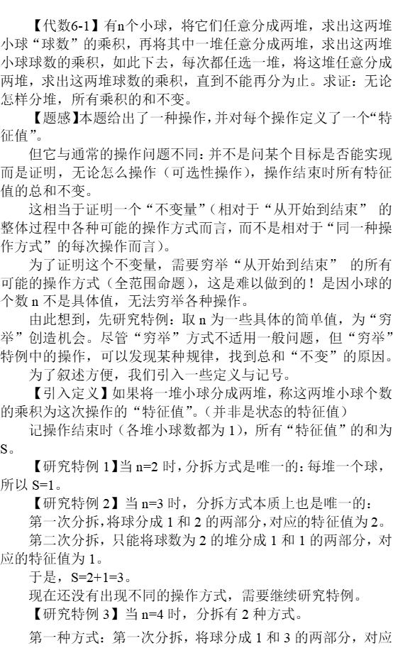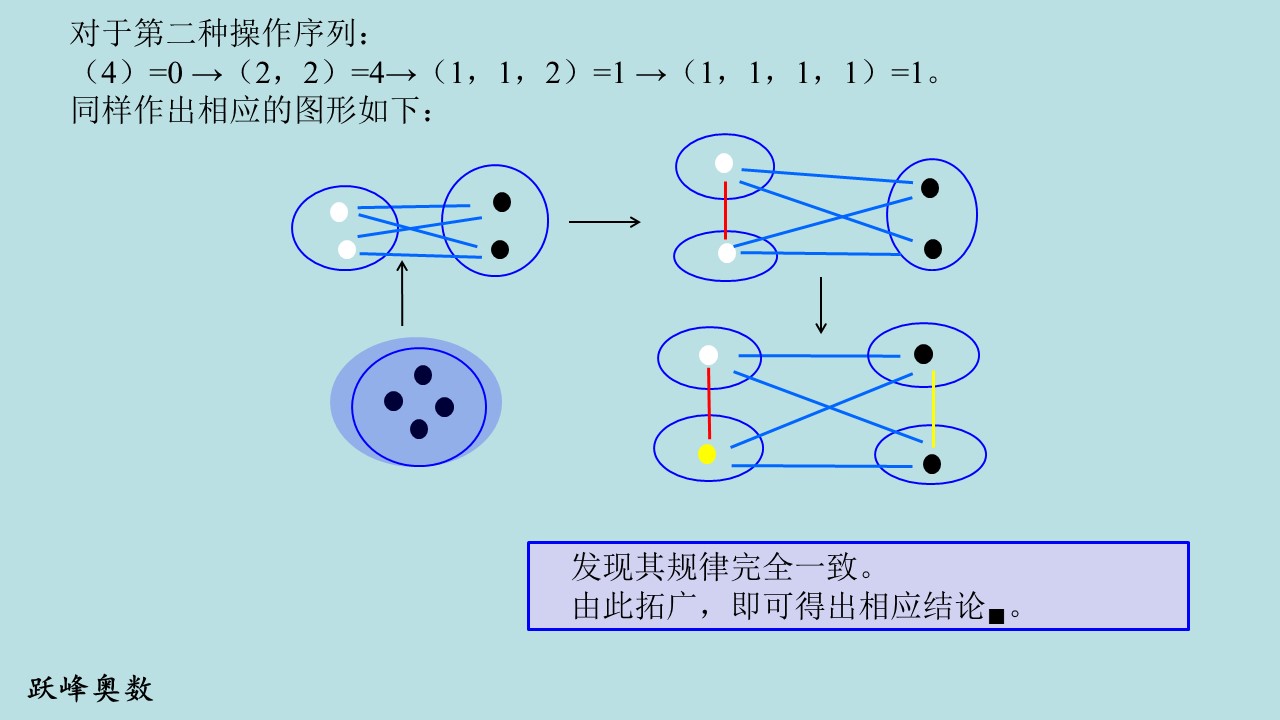 为了证明这个不变量,需要穷举“从开始到结束” 的所有可能的操作方式(全范围命题),这是难以做到的!是因小球的个数n不是具体值,无法穷举各种操作。