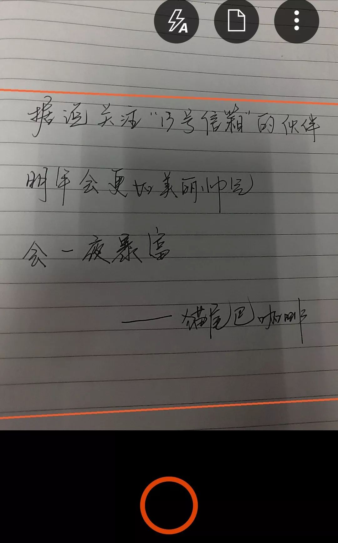 软件是由微软开发的,可以使用一个Office账号,打通手机、平板、网页、电脑,扫描的效果比较好,可以适应各种复杂的光线环境,得到较好的扫描效果,转成文字的正确率也是极高的,大概有99%。软件打开便是扫描界面,可以直接拍照进行扫描。