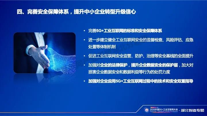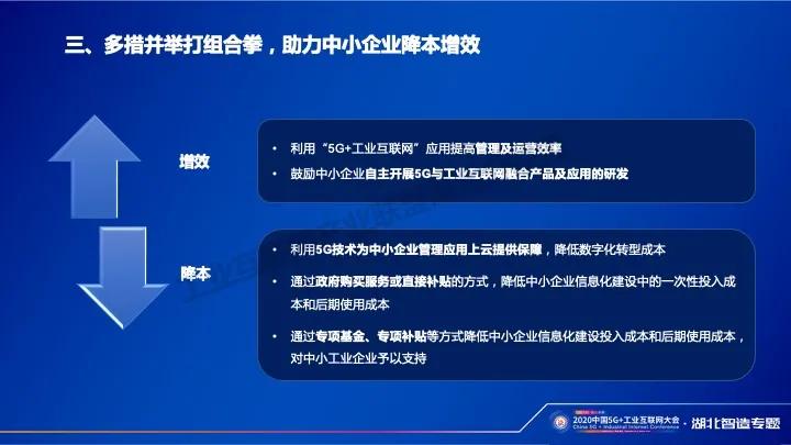 3.大咖说5G+工业互联网赋能中小企业高质量发展的过程中,一是聚焦5G网络建设,打造中小企业公共服务平台;二是需要加强大中小企业融通发展,积极探索产业链数据链融合新模式;三是多措并举打组合拳,助力中小企业降本增效;四是亟待完善安全保障体系,提升中小企业转型升级信心