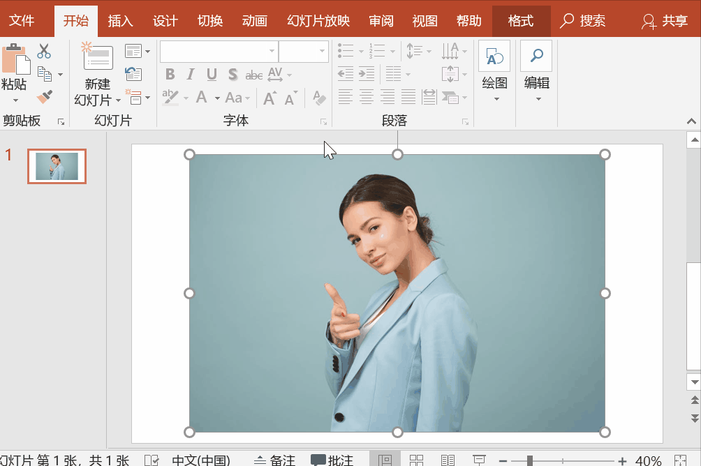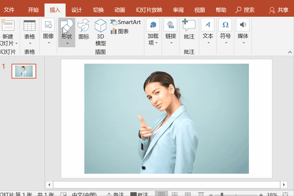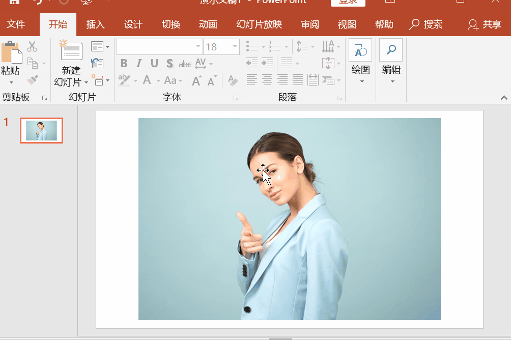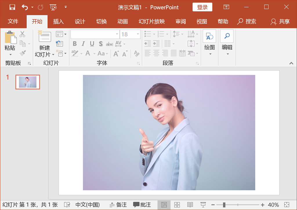 首先我们打开PPT,插入一张图片,然后呢,我们先来给美女美白一下肤色: