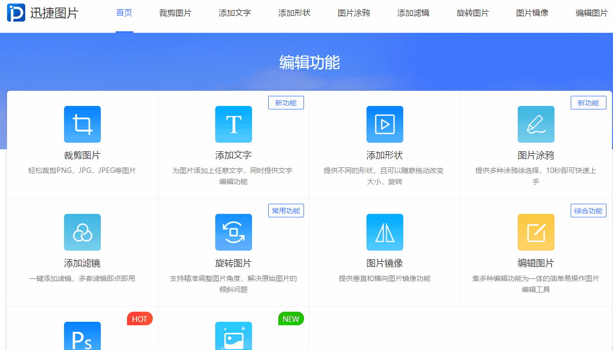 如果觉得用PPT处理图片比较麻烦,又不会用PS的话,我们可以直接用一些简单的工具来处理图片,在这里给大家分享一个免费的图片处理网站——【迅捷图片】。这个网站上有很多图片处理工具。