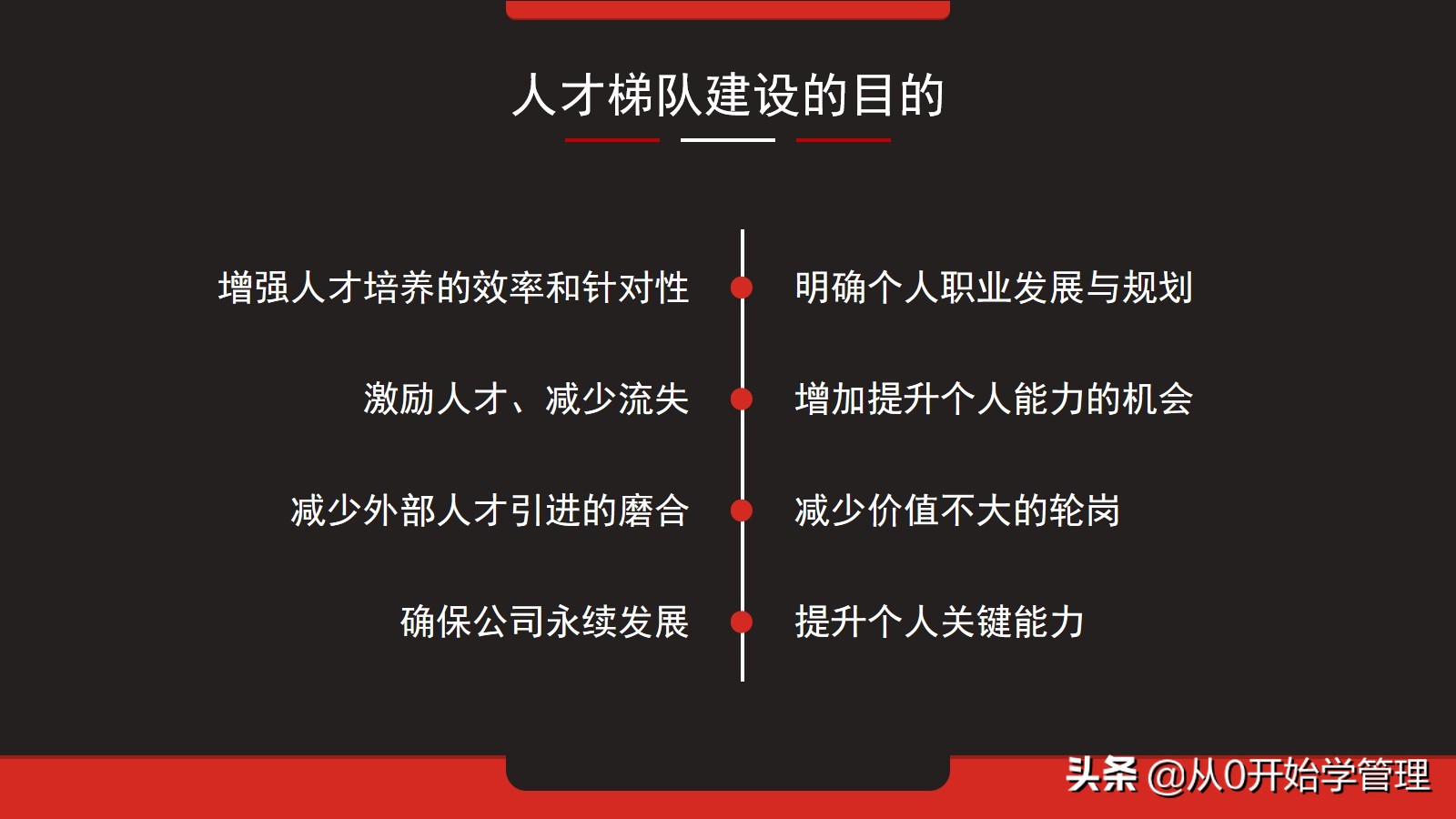 应用场景:激励人才 减少人才流水 培养人才 增加内部机会 提升个人关键能力 公司持续发展1 人才梯队可以不建立么2人才梯队建设的目的:增强人才培养的效率和针对性 激励人才、减少流失等3梯队人才的培养模型:考核/选拔:年综合考评制 业绩评估 素质评价 后备人才库 人才标准 人才盘点梯队人才培养:沟通/反馈制度 业绩评估 任职资格 培养使用方向 薪酬调整 发展措施 培训 干部任免:干部提名 360度考评 任免审批 任免推荐4梯队人才的管理:人才盘点 人才选拔 培养发展 晋升与发展 沟通与反馈 5人才梯队建设发展通道