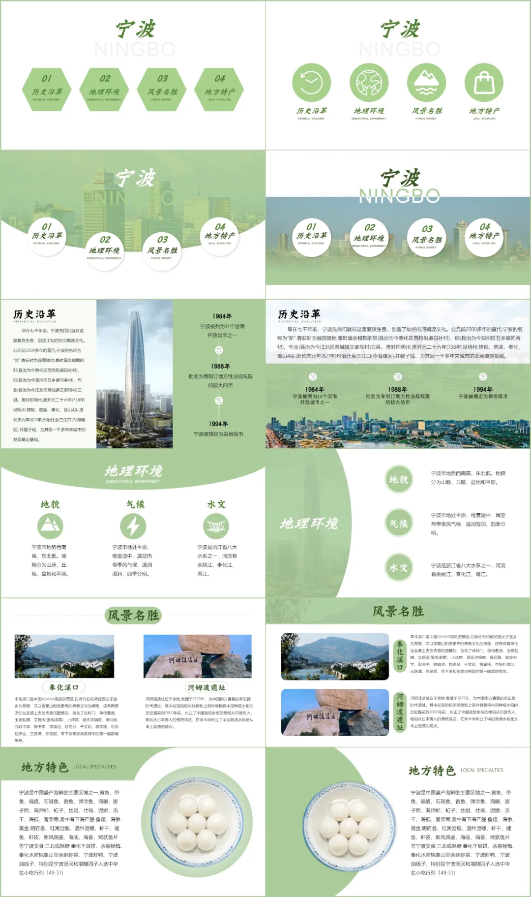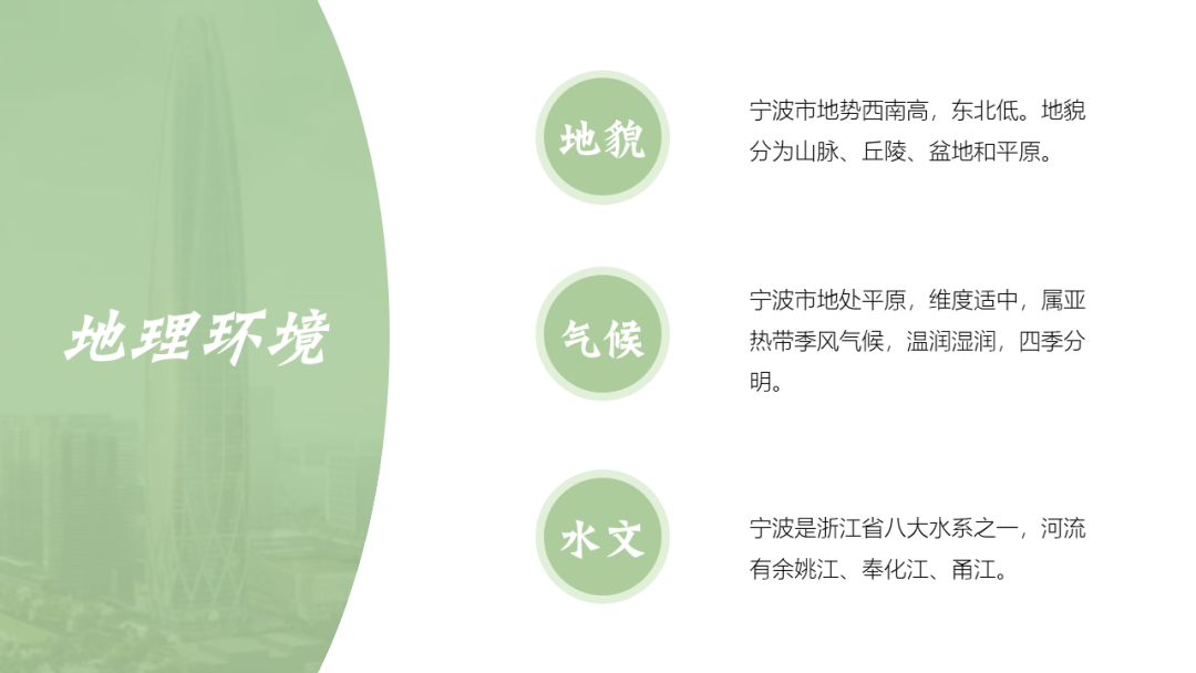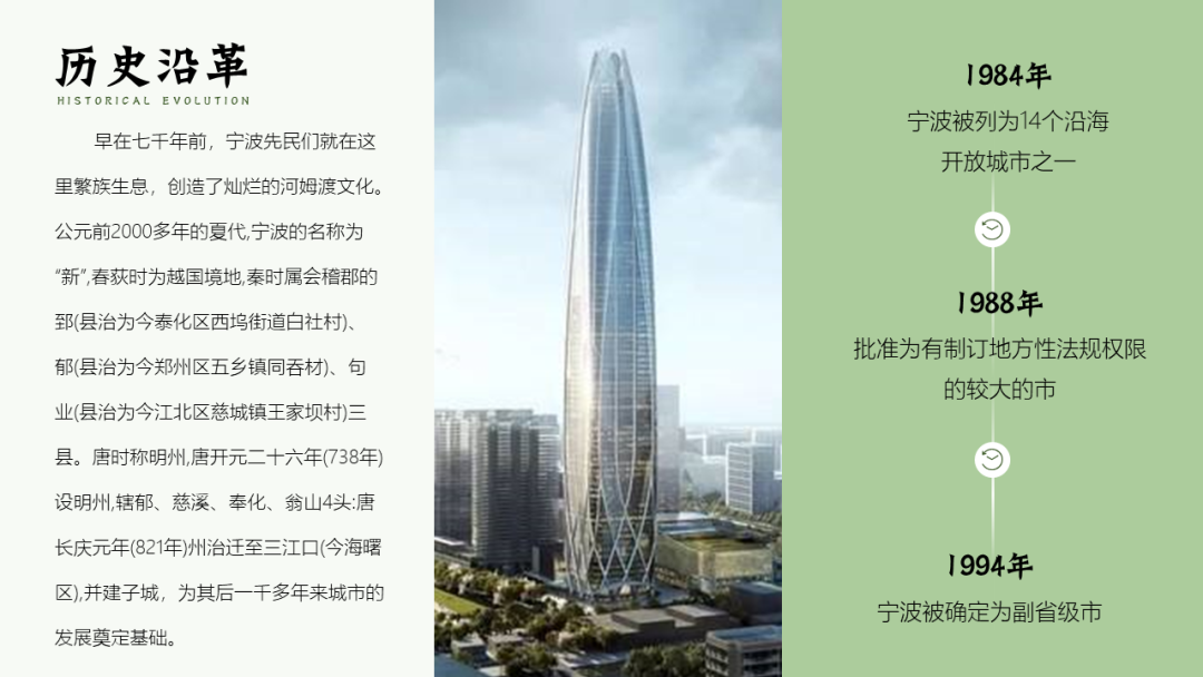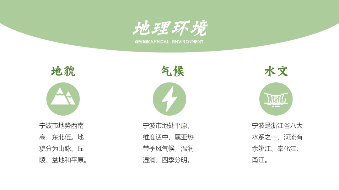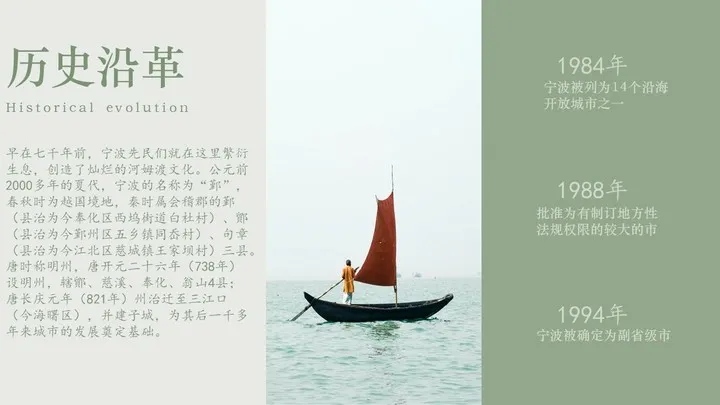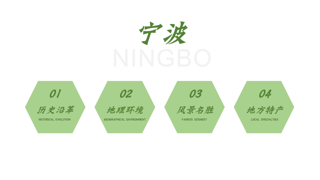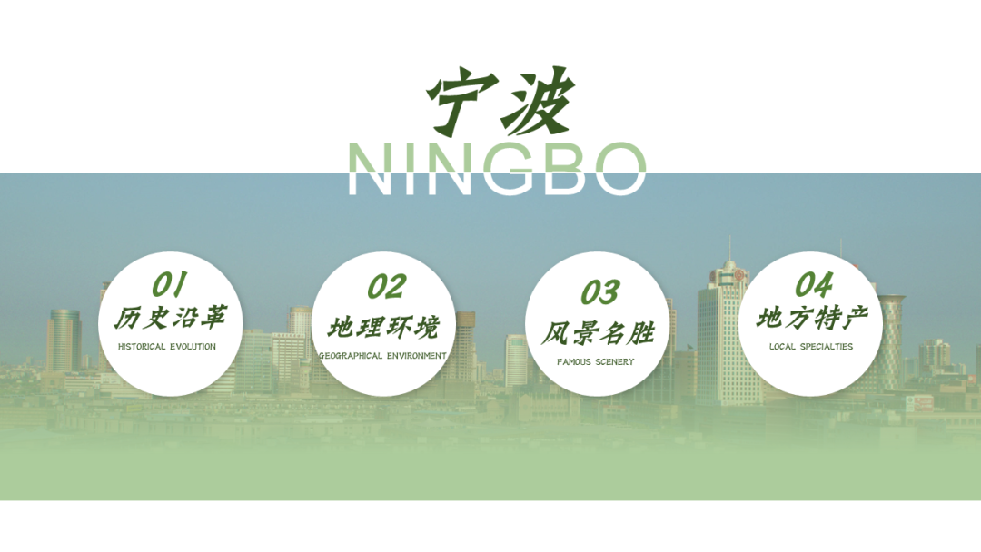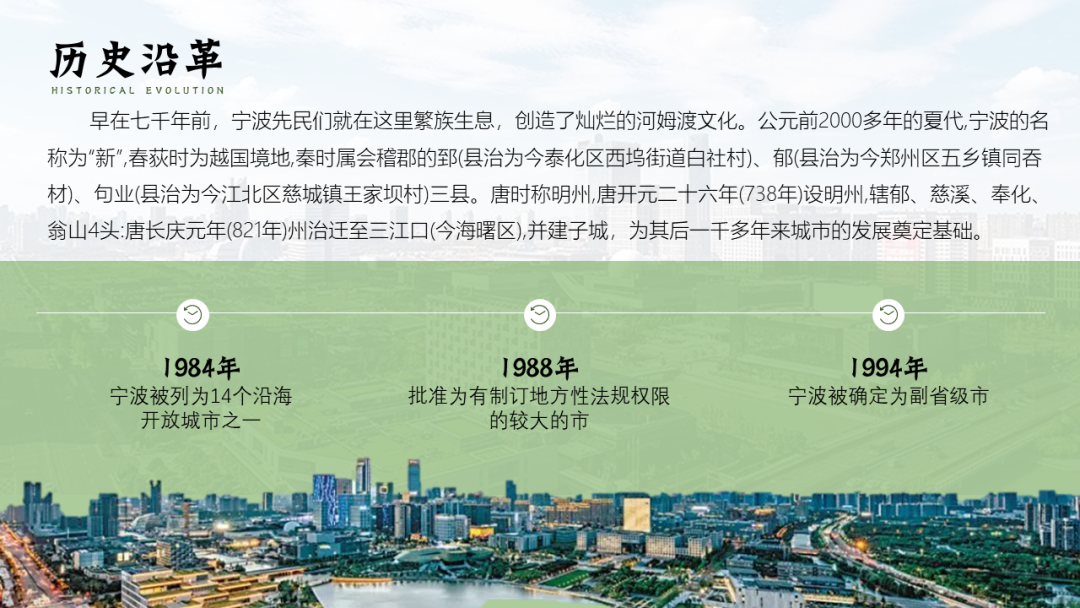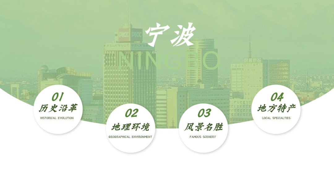 在改这份PPT之前,我在网上了解了宁波这座城市,宁波人文积淀丰厚,历史文化悠久,属于典型的江南水乡兼海港城市。