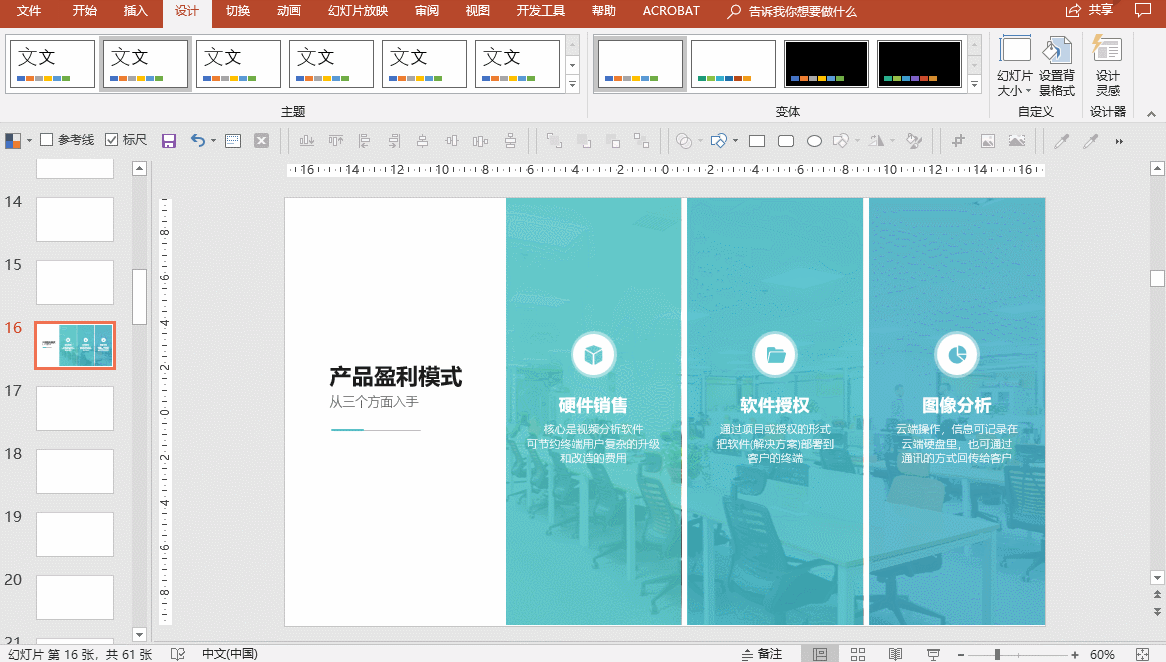 解决方案:其实PPT默认导出图片尺寸,是由“幻灯片大小“直接影响的。默认的幻灯片大小(16:9)是33.867cm x 19.05cm,这个尺寸导出图片的分辨率就是1280x720。那么…把幻灯片尺寸改大点,导出的图片不就更清晰了么?
