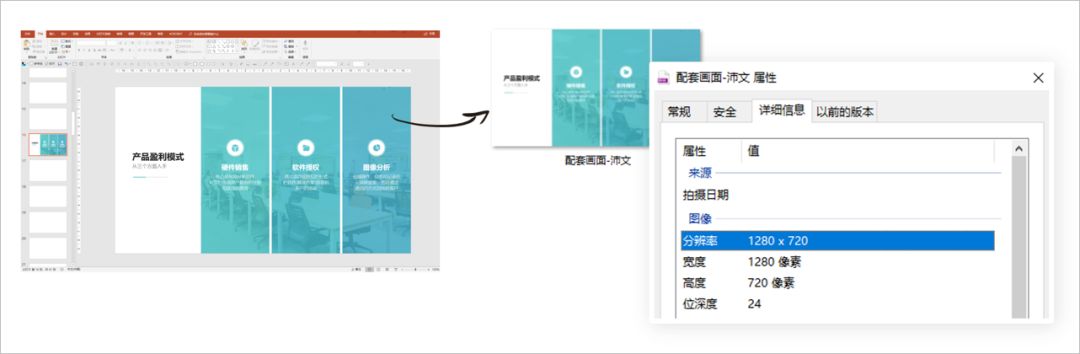 但美中不足的是PPT默认导出图片的尺寸是1280x720,清晰度差了一丢丢,整体感觉也就差了一截。