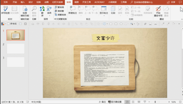 在菜单栏【审阅】里,就可以找到PPT自带的【简转繁】功能啦~