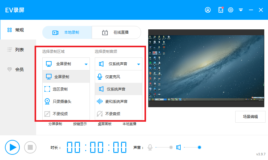 与PPT的录屏相比,EV录屏作为一款专业的录屏软件,功能更加齐全,录制区域和录制音频可以按照我们的需求进行多项选择。