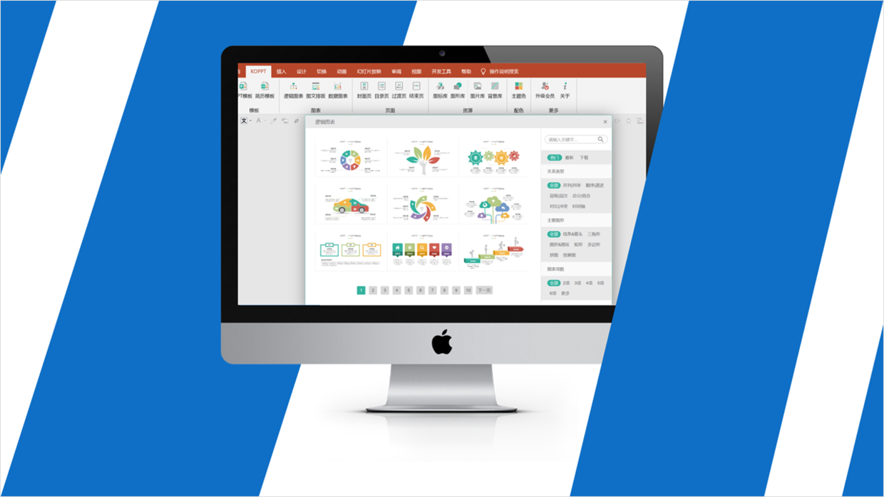 除此之外,【KOPPT】插件中,还有其他海量素材,比如图标、图形、图片、背景等等。