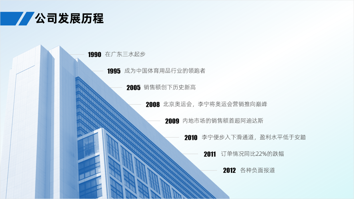 这种建筑样式的时间轴,比较符合企业或公司的气质,看一下优化之后的效果。