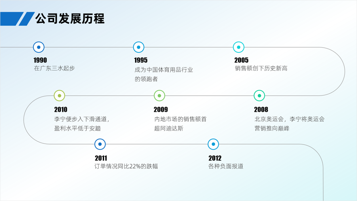 还有一组比较常见的页面,那就是【时间轴】,比如下面这种竖版时间轴的做法。