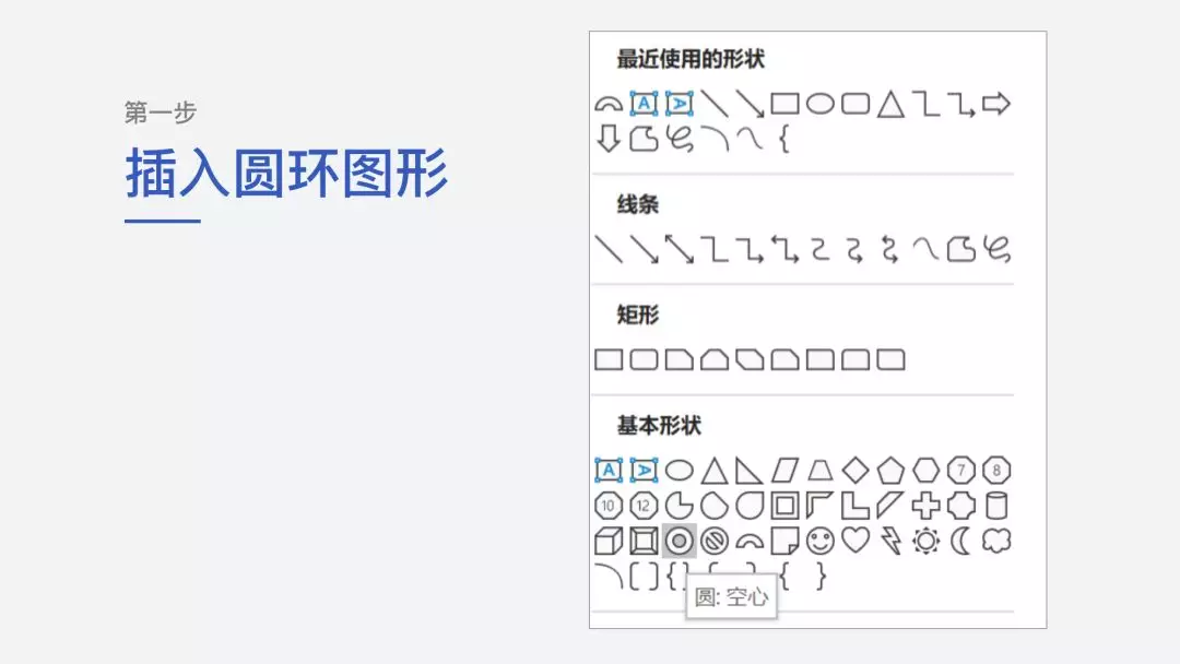 第一步 插入一个环形形状: