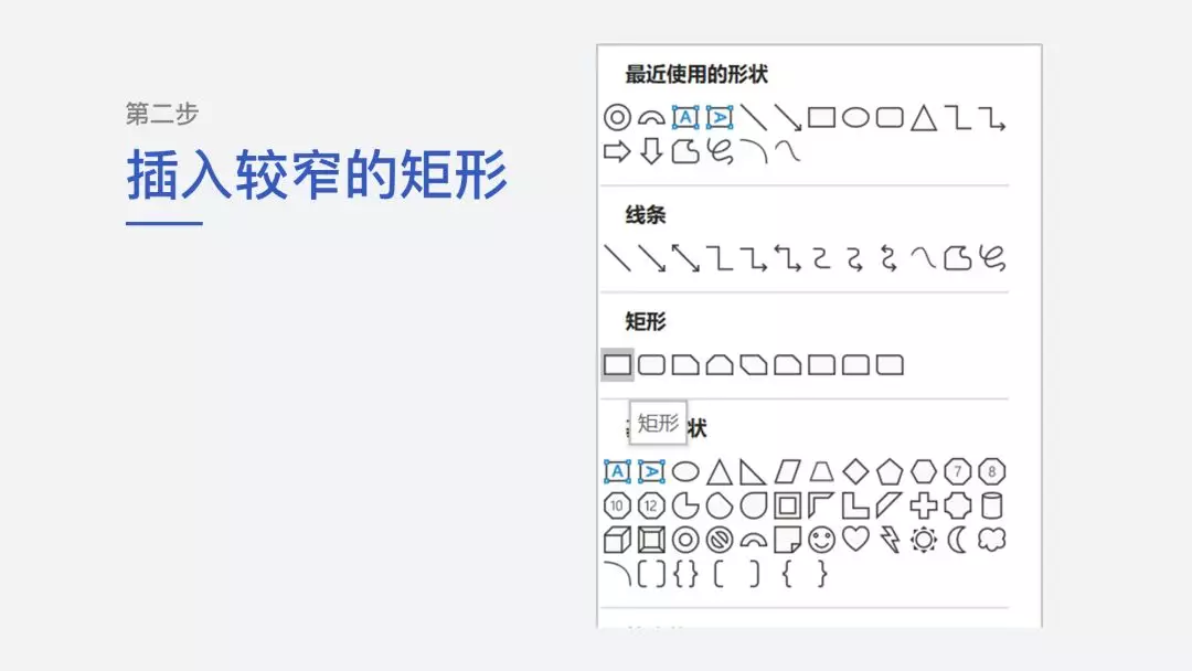第二步 插入一个矩形,宽度尽量窄一点: